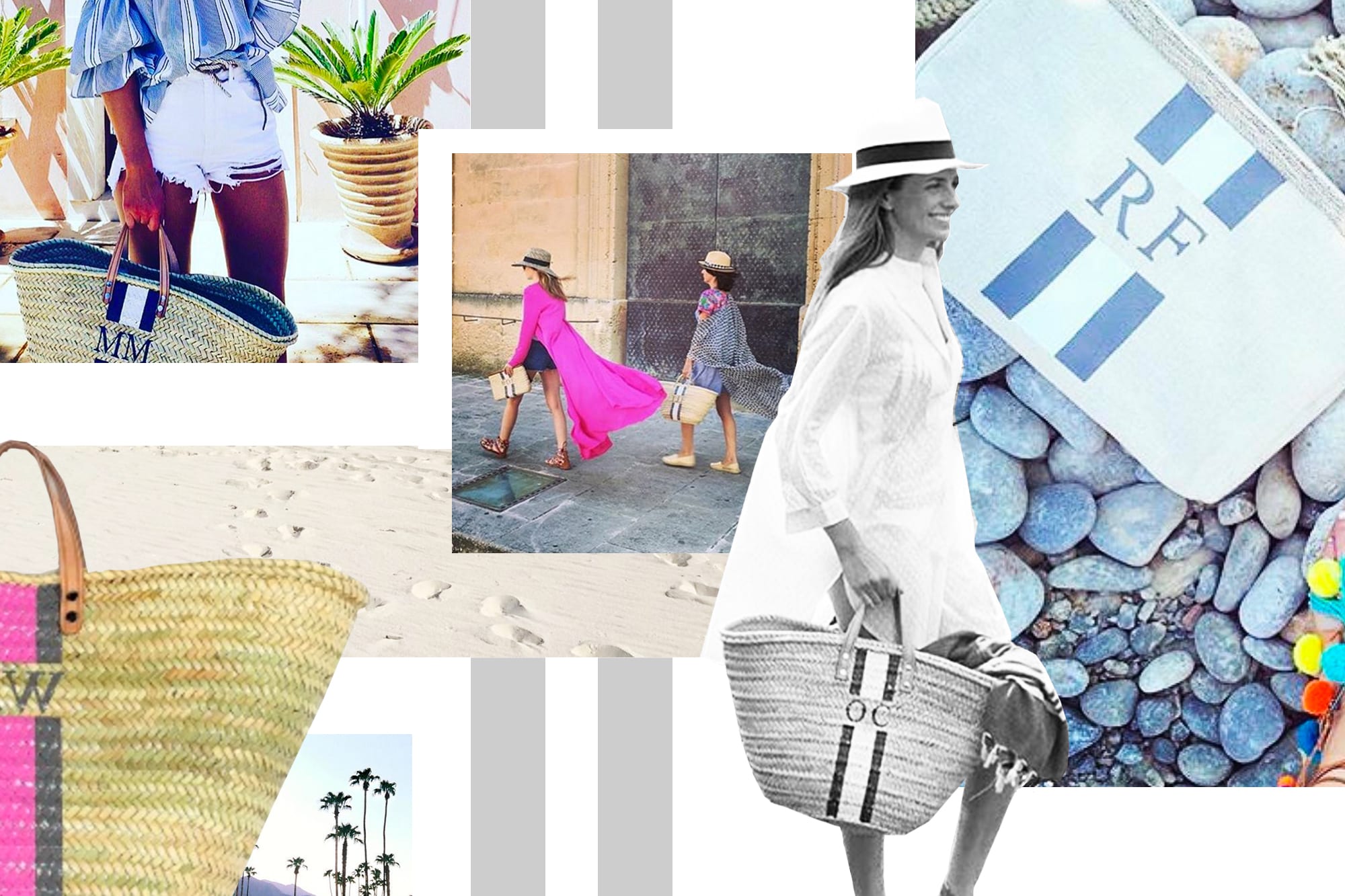 From palm straw shoppers to pretty clutches and with a whole host of colour combinations to choose from, the best news is they're also relatively easy on the purse strings, with a small monogrammed basket starting at £55.