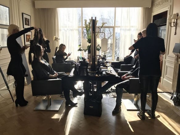 My team and I are in the Savoy from Thursday [7th of February] afternoon prior to the Sunday [10th of February] award show where we set up our pop-up salon, social media engagement room and VIP styling area. On Friday, we have lots of our clients, press, friends and family visit the suite, then on Saturday our influencers come and visit us.